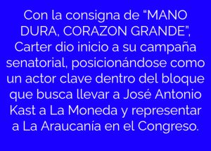 Una vibrante jornada se vivió en el Gimnasio Municipal Bernardo O’Higgins de Temuco con su capacidad completa, donde se lanzó oficialmente la campaña presidencial de José Antonio Kast y las candidaturas parlamentarias en La Araucanía. En el escenario, uno de los protagonistas fue el candidato a senador Rodolfo Carter, quien al ser presentado recibió una ovasión de los presentes y con emoción agradeció a su familia, a las comunidades presentes y reafirmó su compromiso con la región.
