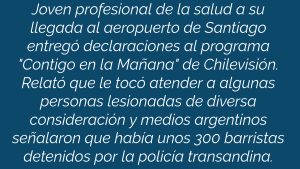 Relató Carla que hubo varios indicios en la previa que este partido sería de alto riesgo; sin embargo, las autoridades argentinas o la organización no hizo nada. “Me consta –dijo- que huno muchos hinchas que ingresaron sin previa revisión”.